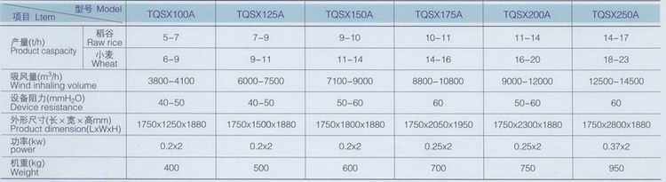 TQSX型A系列吸式比重去石機技術參數
